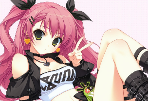 solo, 2000s_moe_style, portrait, nicole, pink hair, green eyes, tube top, short shorts, cropped jacket, belt boots, hair ribbon, hairclip, two side up, earrings, single sock, high belt, thigh strap, detached sleeves, doll, black collar, v, masterpiece, 4k resolution, animeThis Model is Impractical if you:
