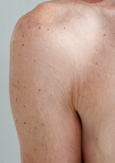 At first, I thought this might have been caused by an excessive amount of freckles in my training images (therby overtraining the freckles) and prepared another training dataset without the freckles. However, the Lora trained on the freckle-less dataset still created artifacts that greatly impacted the quality of generated images. This time, it looked as if stretch marks had been scattered all over the body: