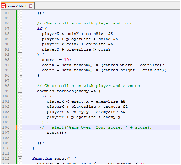 Only one little change that you can do to the code to enjoy the game is to comment the line 106