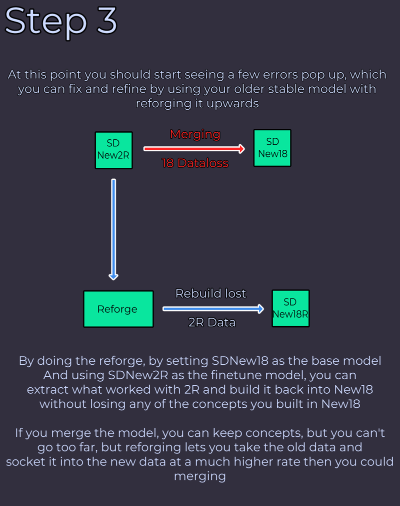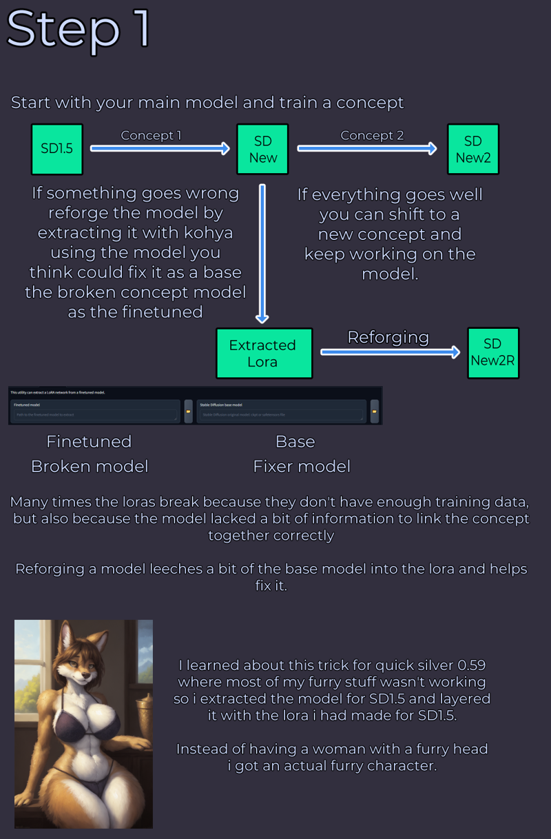 For me, I extracted my SDnew, which could only do really ruined versions of furry characters, then applied it next to the lora i mixed to make SDnew, so both the extracted SDnew and the lora worked together to make SDnewR.