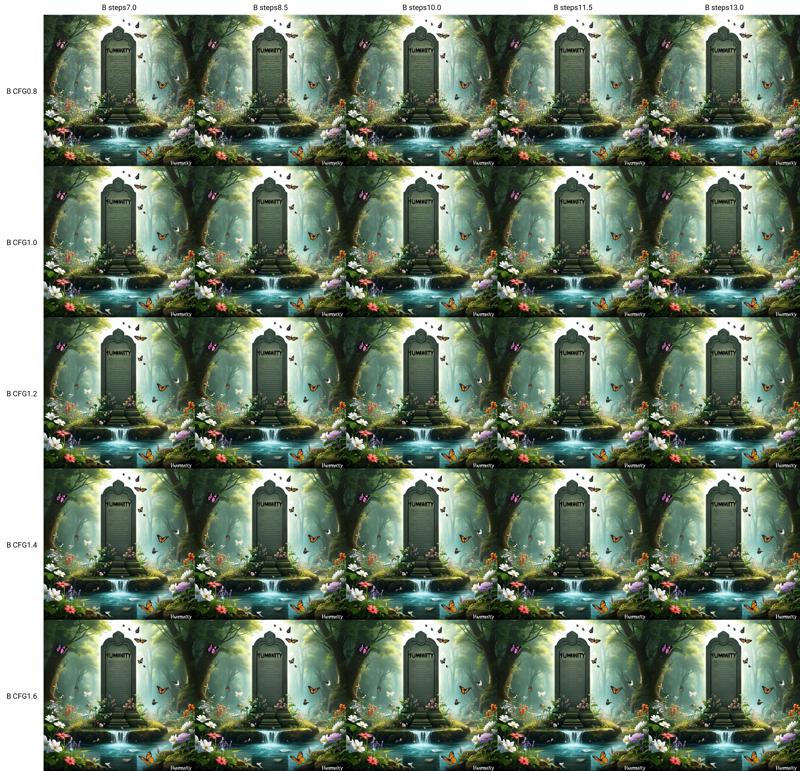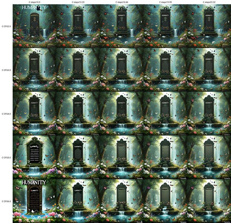 I personally think that 20 steps and CFG 6.0 gave the best results but there are many variations that were good.