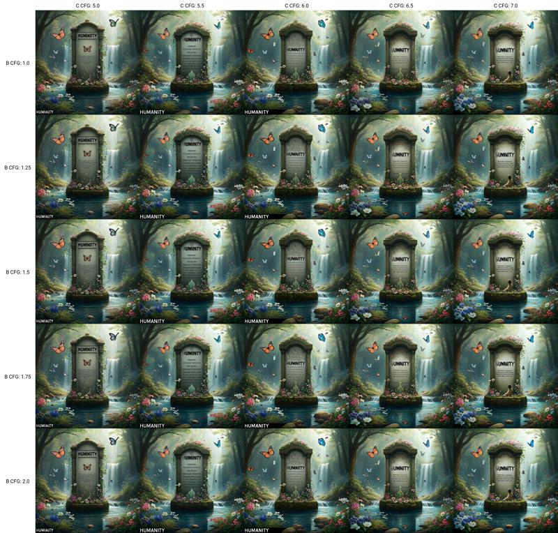 From these tests I found that I prefer to run 20 steps at CFG 6 for stage C and 8 steps at CFG 1.6 for stage B.