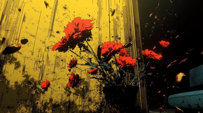 Another bullet tore through the drywall, splintering the surface and shattering the delicate red chrysanthemum Frank had painstakingly arranged on the windowsill. The flowers had been a small touch of beauty in the otherwise grim universe —a fleeting reminder of something softer, something alive.