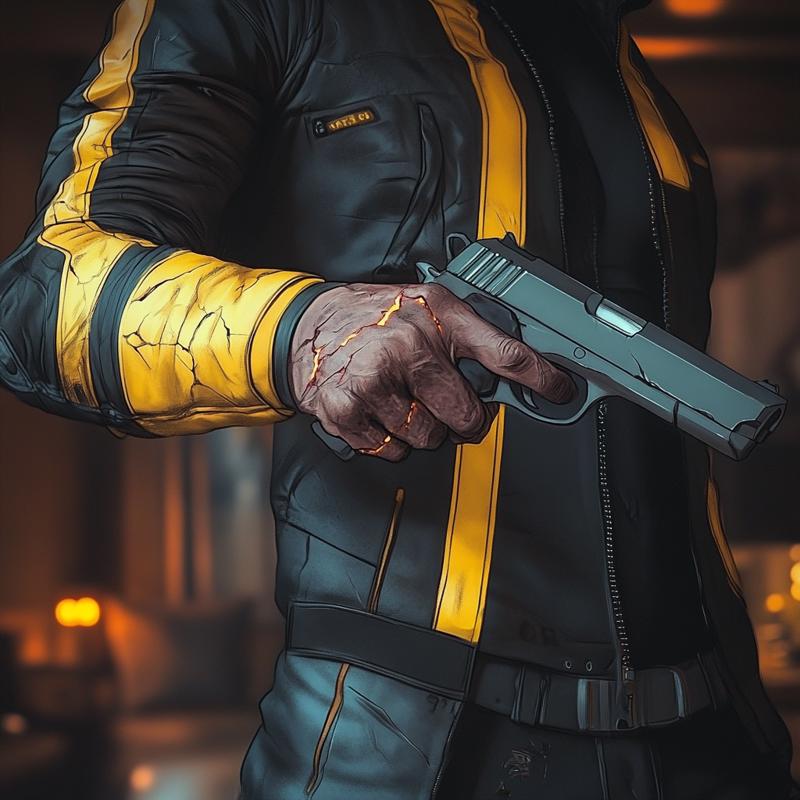 A sharp, searing pain exploded in his side as a bullet tore through the fabric of his jacket and into his ribs. Frank grunted, feeling the cold burn of metal sinking into flesh, but he didn’t flinch. His body was used to this—he was an enforcer, after all. A few hits weren’t enough to take him down. He gritted his teeth, the pain already fading into a dull throb as his internal systems began to patch the damage. His cyberware worked on overdrive to keep him standing, compensating for the shock, his muscles tightening in preparation for the next strike.