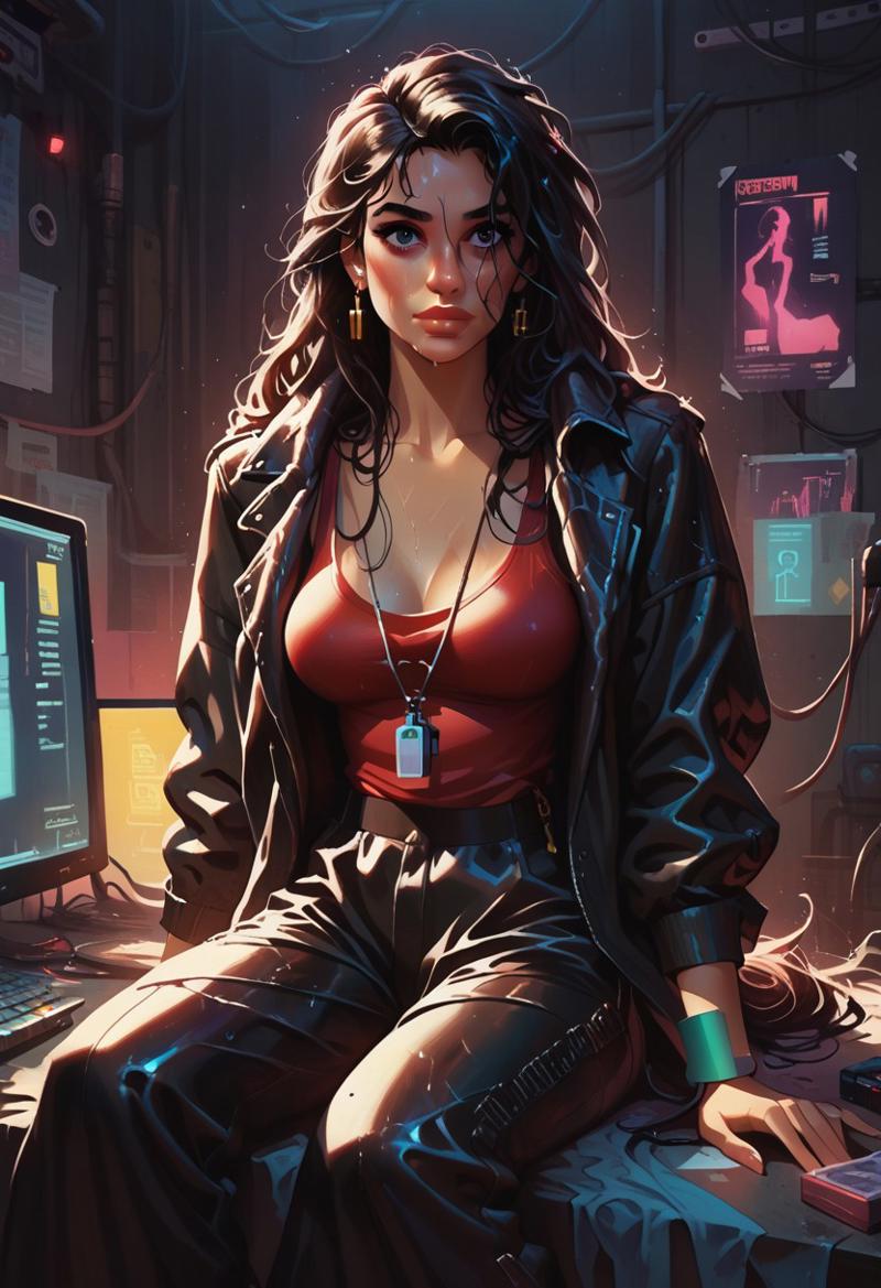 As Jude turned back to face her, Anya met her gaze steadily, her green eyes gleaming with a hint of mischief. She knew she looked stunning in her form-fitting latex skin. But it wasn't about flaunting herself - it was about asserting control, about showing Jude that she was no damsel in distress. Anya paid no attention to the hackers reaction, instead focusing on the task at hand.