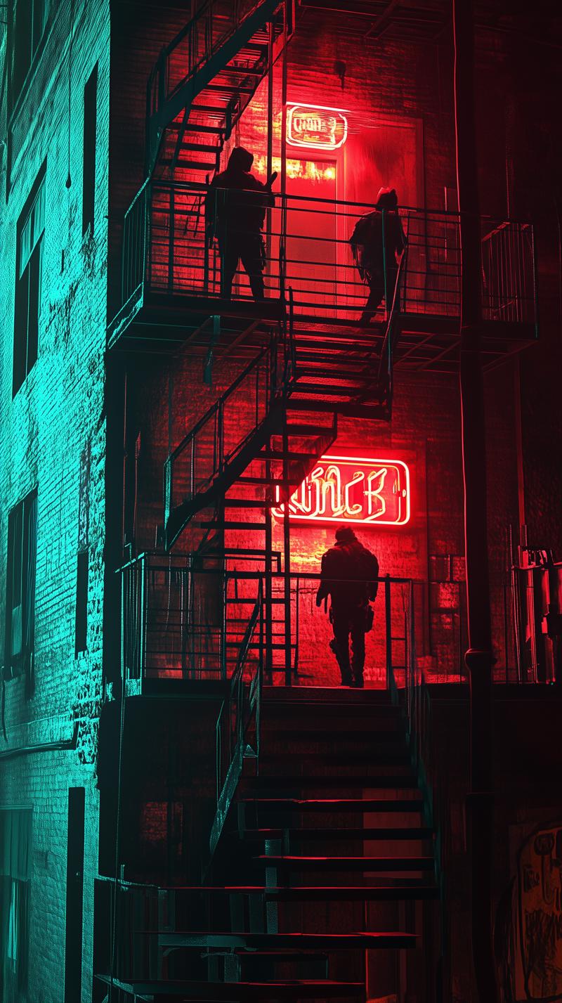 Once outside, the neon glow of the city enveloped them. Jude felt her pulse race as her eyes darted from shadow to shadow. “We’re sitting ducks out here,” she said.