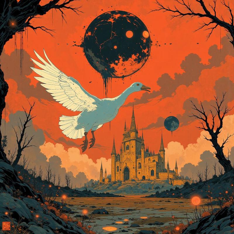 A flutter of motion jerked her back to reality. Out of nowhere, a white duck swooped down, landing beside Anya’s body with an eerie grace. It cocked its head, almost curious, before pecking at her chest.