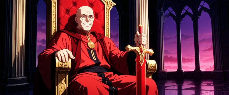 彼の象徴的なローブ姿を再現したい場合は、以下のタグを追加してください。imperialrobe, red robe, medallion