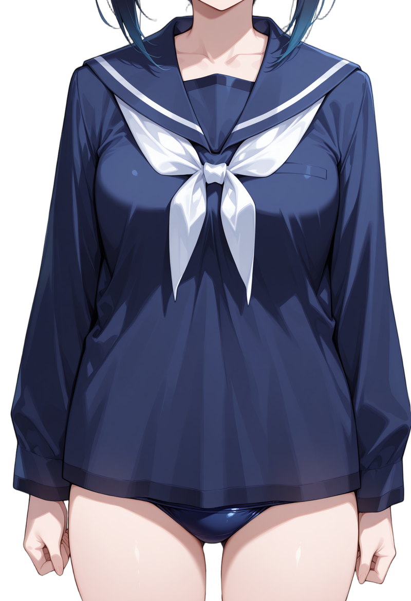 Triggerwords: c-sera, blue serafuku dress, white neckerchief, long sleeves, swimsuit under clothes,