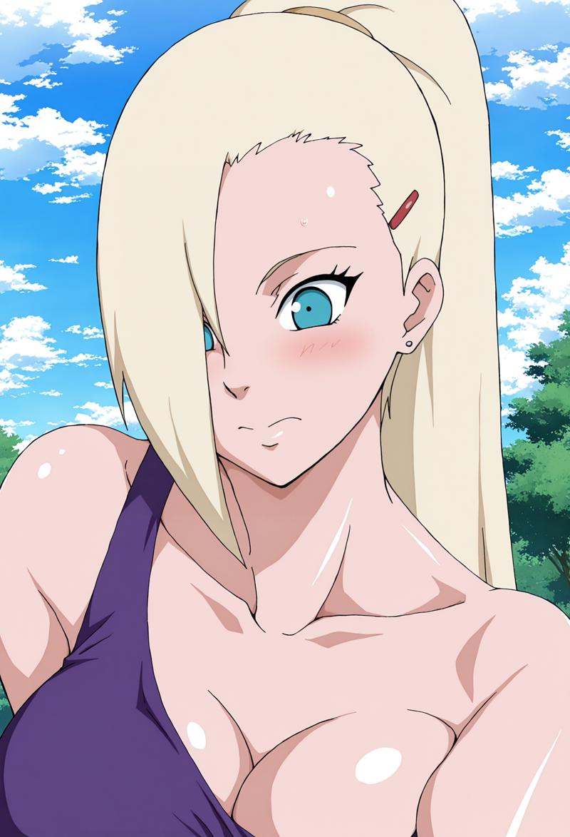 6.山中井野(疾风传):Yamanaka Ino(Shippuuden),1girl,solo,ponytail,long hair,blonde hair,hair over one eye,hair ornament,hairclip,blue eyes,huge breasts/large breasts