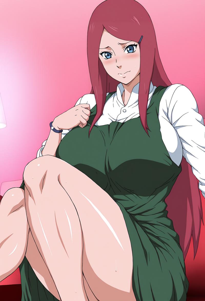 11.漩涡玖辛奈:Uzumaki Kushina,1girl,solo,hairclip, hair ornament, red hair,long hair,mature female,blue eyes,huge breasts / ponytail
