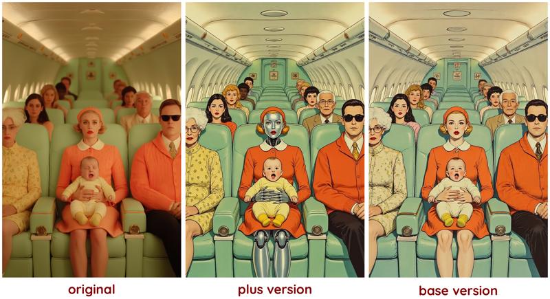 While converting the image style, the image content can be edited. From the test results, the Plus version is also superior to the Base version in this aspect.