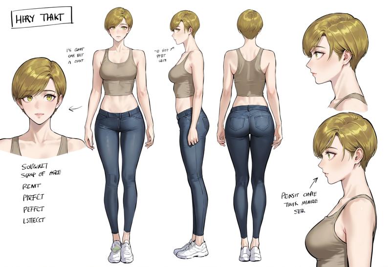 Outfit: Tank top, crop top (You can dress her in other outfits, but at the end of the day, she's tank-top girl)