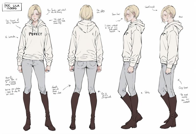 ring,jewelry,hoodie,hood,hood down,long sleeves,pants,denim,grey pants,boots,leather boots,knee boots,brown footwear,casual,alternate costume