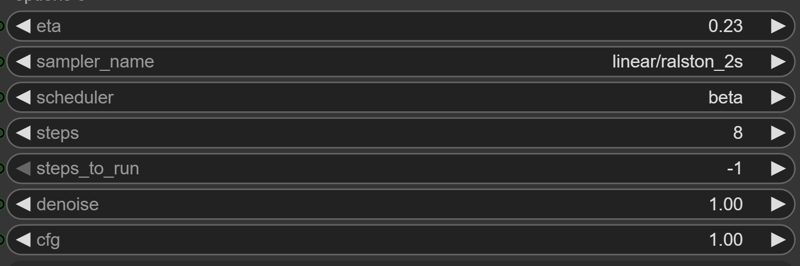 I recommend ClownSharkSampler and Linear/ralston_2s for detail.