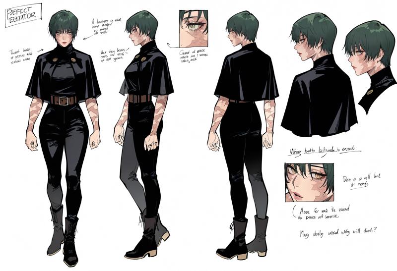 black pants,pants,belt,black footwear,brown belt,shirt,jacket,black shirt,black jacket,school uniform,boots,buttons,shoes,capelet,short sleeves